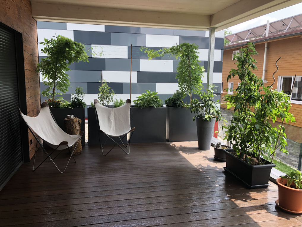 Ein Blick ins Grüne nicht nur vom Friseurstuhl aus sondern auch von der HAARGLÜCK Terrasse.